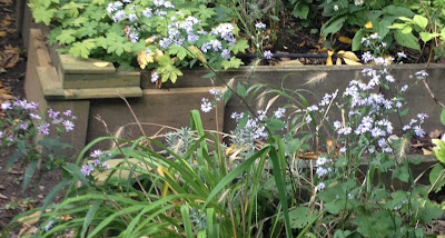 Two sort of asters have sprung into bloom in the last couple of weeks. The first are the ones to the right which I've been encouraging in our little garden. They are, I think, called New York asters, but I'm sure I read earlier that they were taken back to France by Samuel de Champlain. The others, below, bloom a little later and are called New York asters.