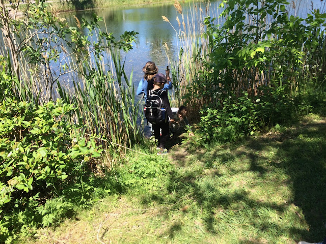 We had a great time, and our friends, who had to check out everything, particularly liked the wilder side of the lake.  It had woods and places where you could get close to the water, plus grass and weeds to pretend to get lost in.  Their game was some adventure drama that they concocted, vaguely inspired by Star Wars.  A down-to-earth pleasure for all...